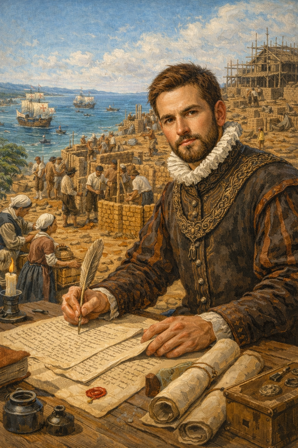 Enquanto soldados construíam muralhas e religiosos erguiam igrejas, homens como Pero de Góis, escrivão da frota e mais tarde provedor-mor e ouvidor, registavam em cartas e relatórios o nascimento da capital. Os seus escritos são hoje fontes primárias inestimáveis: descrevem o desembarque, as primeiras construções, as dificuldades do quotidiano, a convivência com os indígenas — muitas vezes mediada por figuras como Caramuru — e a lenta transformação de um espaço natural numa cidade de pedra, lei e poder.