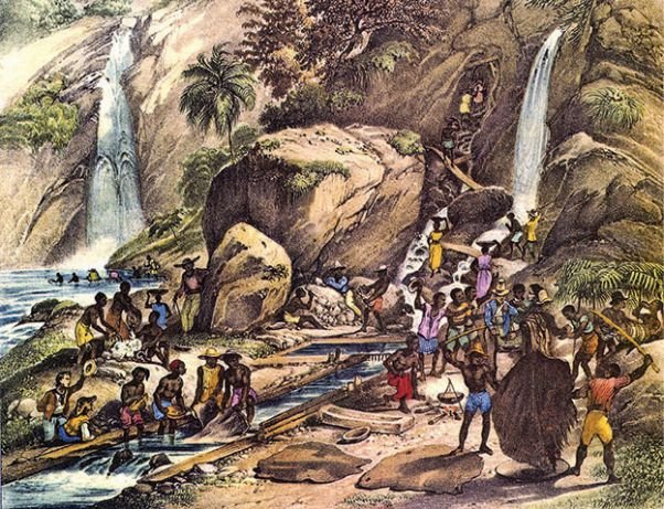 Mas a prosperidade teve um custo humano elevado. A mineração intensificou de forma dramática o trabalho forçado. Populações indígenas remanescentes foram empurradas para zonas cada vez mais remotas ou integradas à força no sistema colonial. Paralelamente, o tráfico transatlântico de africanos escravizados atingiu níveis sem precedentes, alterando de forma irreversível a composição demográfica do Brasil. O ouro, extraído com técnicas rudimentares e sob condições extremas, assentava sobre o sofrimento de milhares de homens e mulheres.